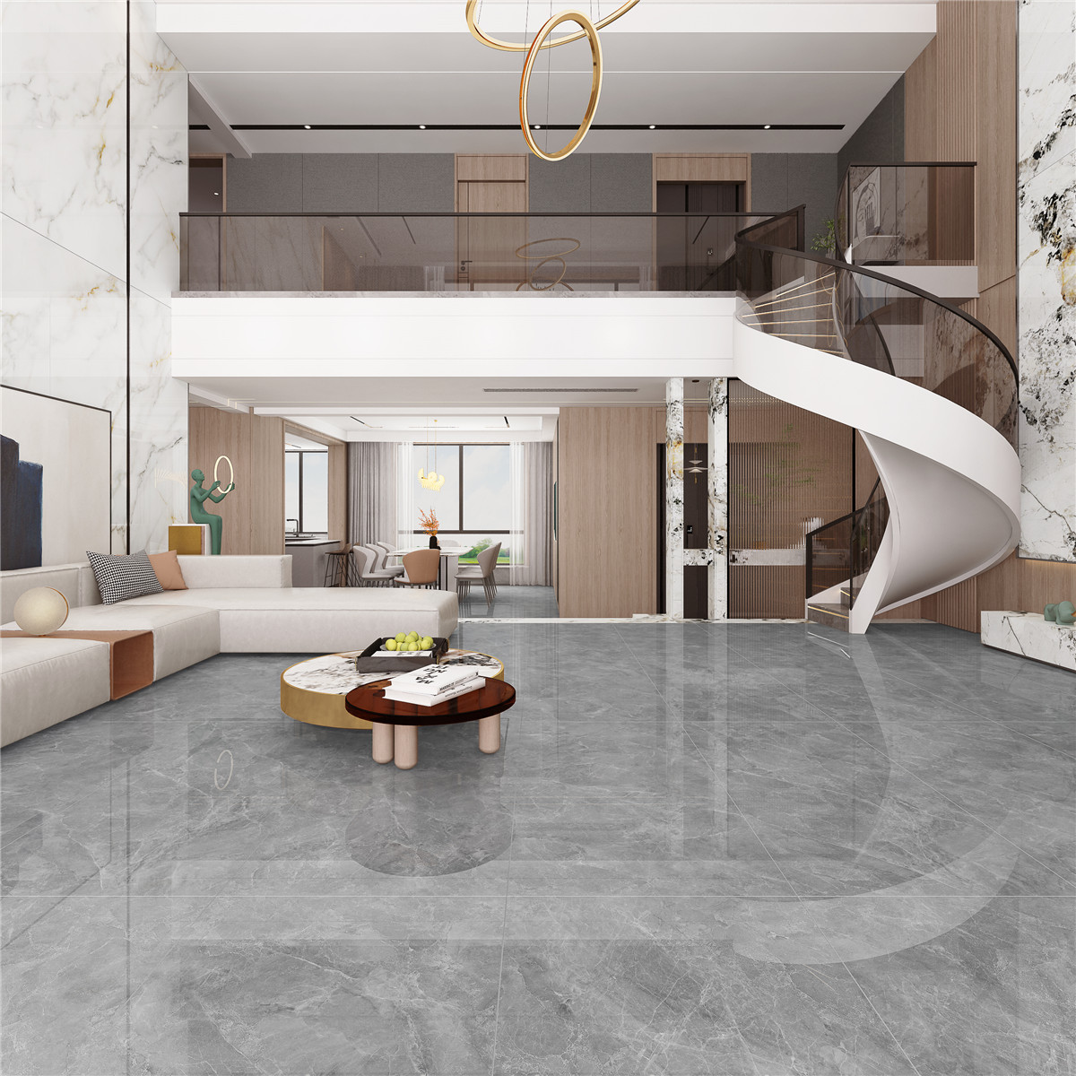 靈感源自頂級石材梵蒂斯灰,金色與淺白色的花紋在深灰色磚面縱橫跳躍,塑造出極具視覺沖擊力的視覺效果。